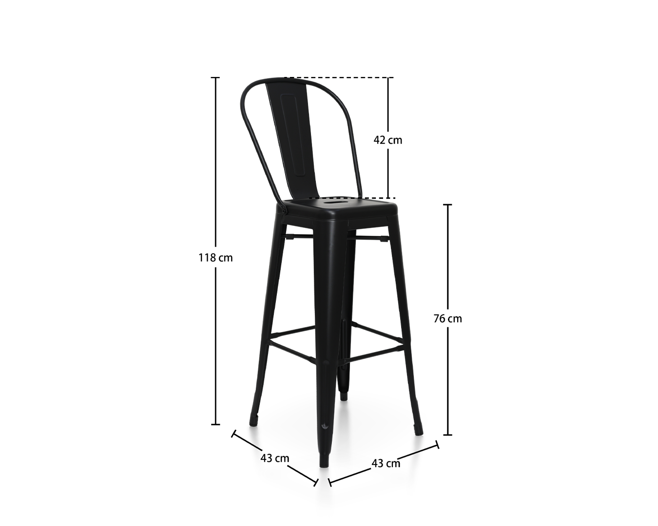 Casa / Prodotti / Sedia da design / Sgabello in metallo nero con schienale