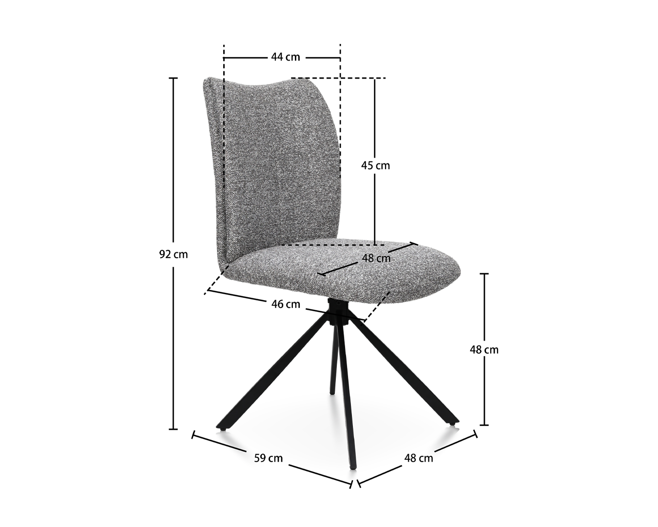 • Progettata con linee eleganti e tessuto sofisticato, questa sedia porta un tocco rinfrescante e minimalista in qualsiasi spazio da pranzo. La funzione girevole aggiunge versatilità e facilità, consentendo un movimento regolare mentre si godono i pasti o le conversazioni.