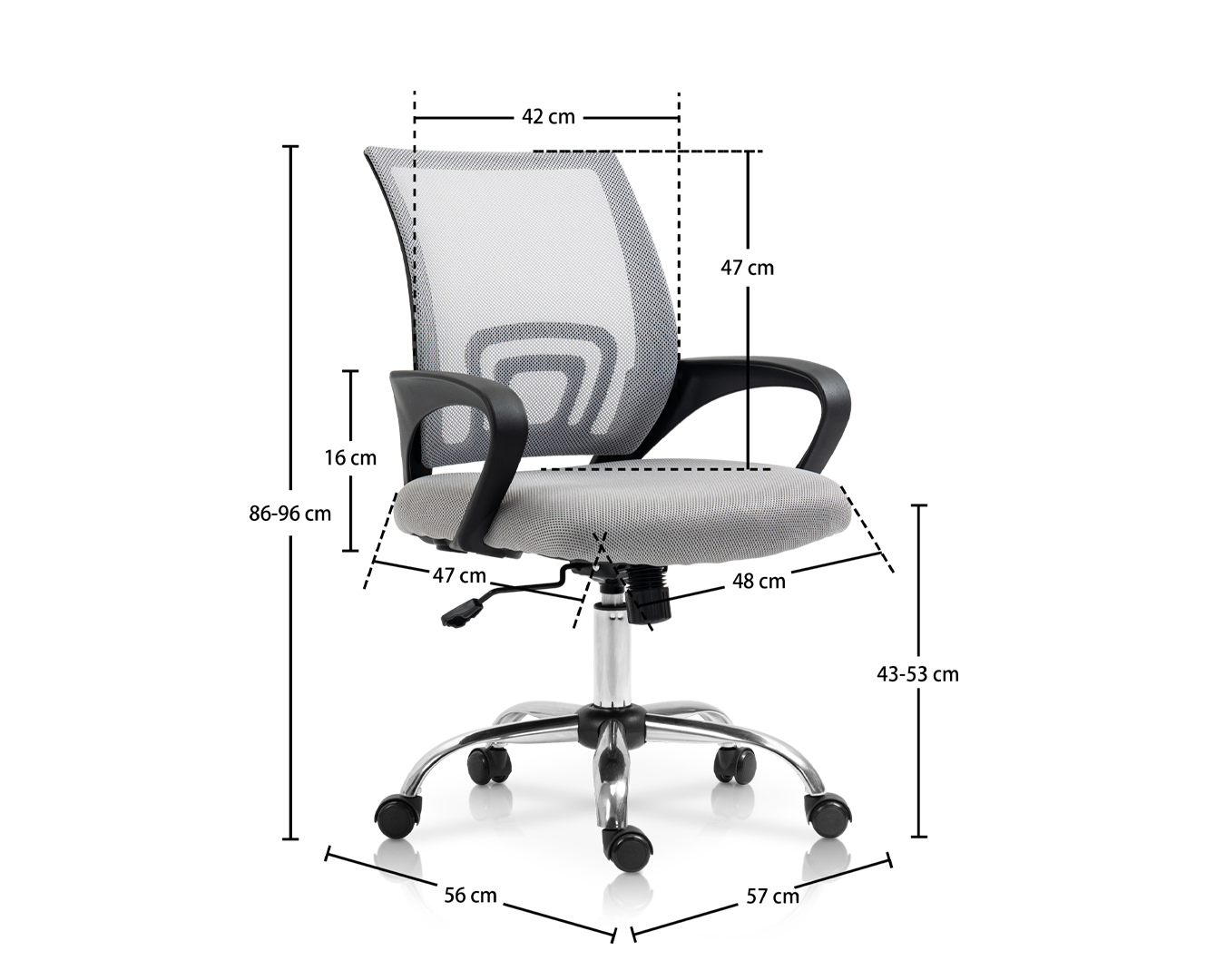-Dimensione: W57*D56*H86-96 cm / SH: 43-53 cm