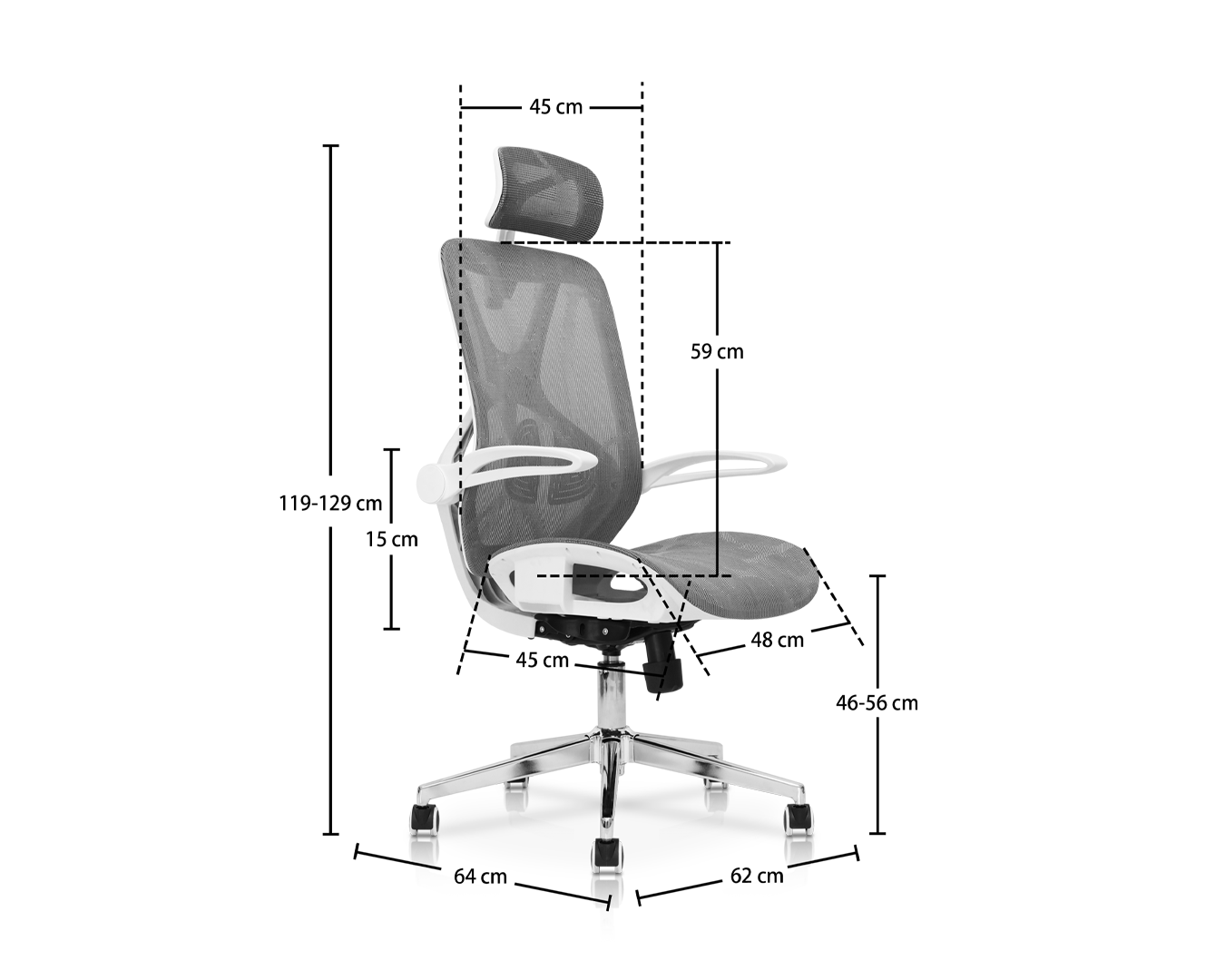 -Dimensione: W62*D64*H119-129CM / SH: 46-56 cm