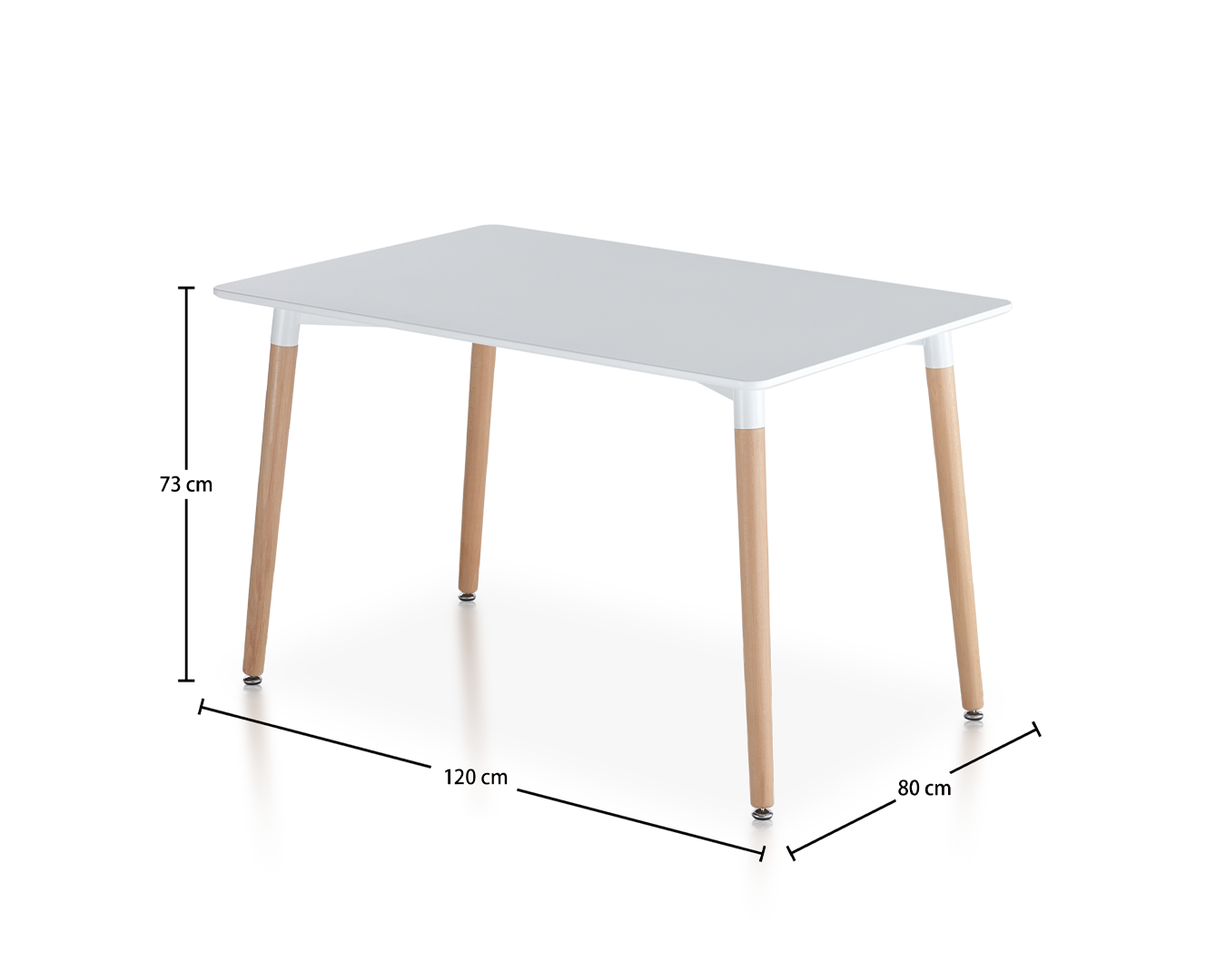 • Le gambe in legno di faggio non solo forniscono supporto robusto, ma introducono anche un elemento naturale e terroso che contrasta magnificamente con la cima bianca, creando un aspetto fresco e invitante. A 120 cm di lunghezza, è una dimensione ideale per gli spazi da pranzo sia piccoli che di medie dimensioni.