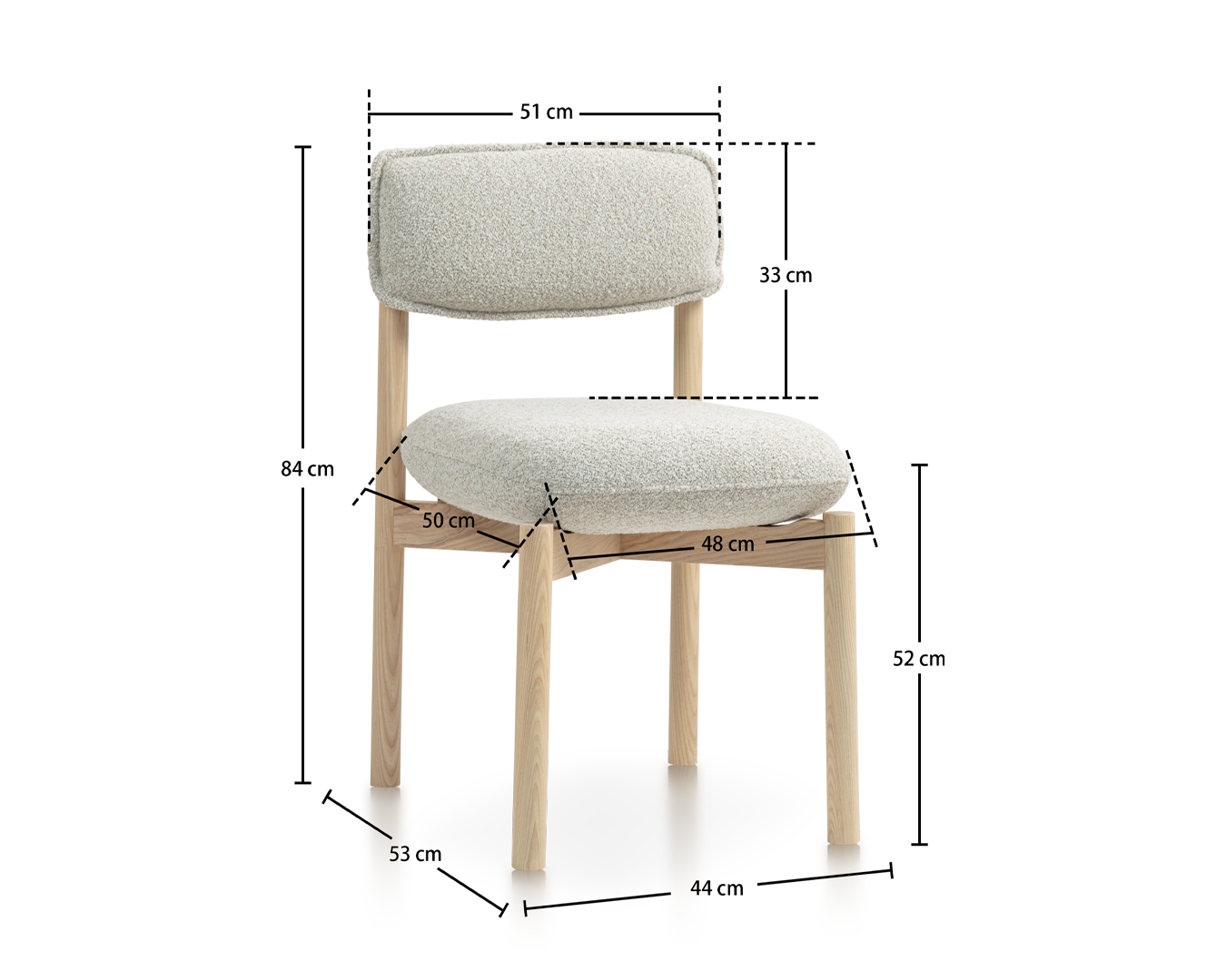 • Realizzato in legno di cenere di alta qualità, la sua finitura di colore chiaro evidenzia i modelli naturali di bellezza e grano del materiale, aggiungendo un tocco di calore ed eleganza a qualsiasi spazio. Il lussuoso sedile e lo schienale imbottito sono progettati per il massimo comfort, garantendo che tu possa rilassarti con stile per lunghi periodi. Il tessuto morbido e strutturato non solo si sente lussuoso contro la pelle, ma completa anche il design minimalista della sedia.
